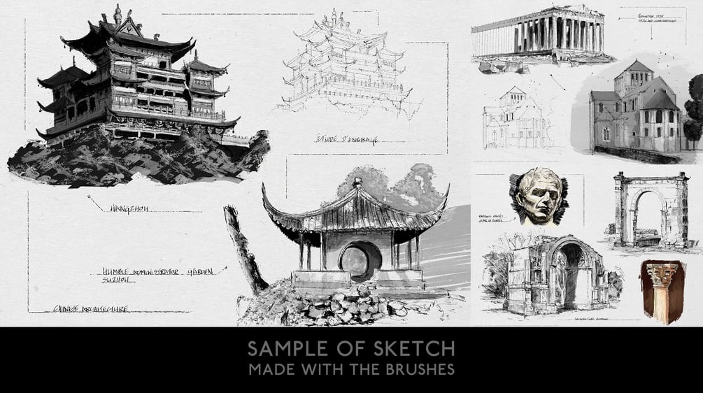I created this pack of brush when I was studying at FZD, I wanted to have fun with brush strokes and get the feeling I had on paper with my traditional tools.